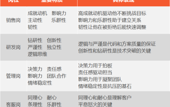没有完美的人格,只有合适的岗位。在阅读报告前,我们可以根据岗位核心胜任力模型,明确这个岗位最需要哪些核心特质,选择3-4个,然后带着问题去报告中寻找答案。